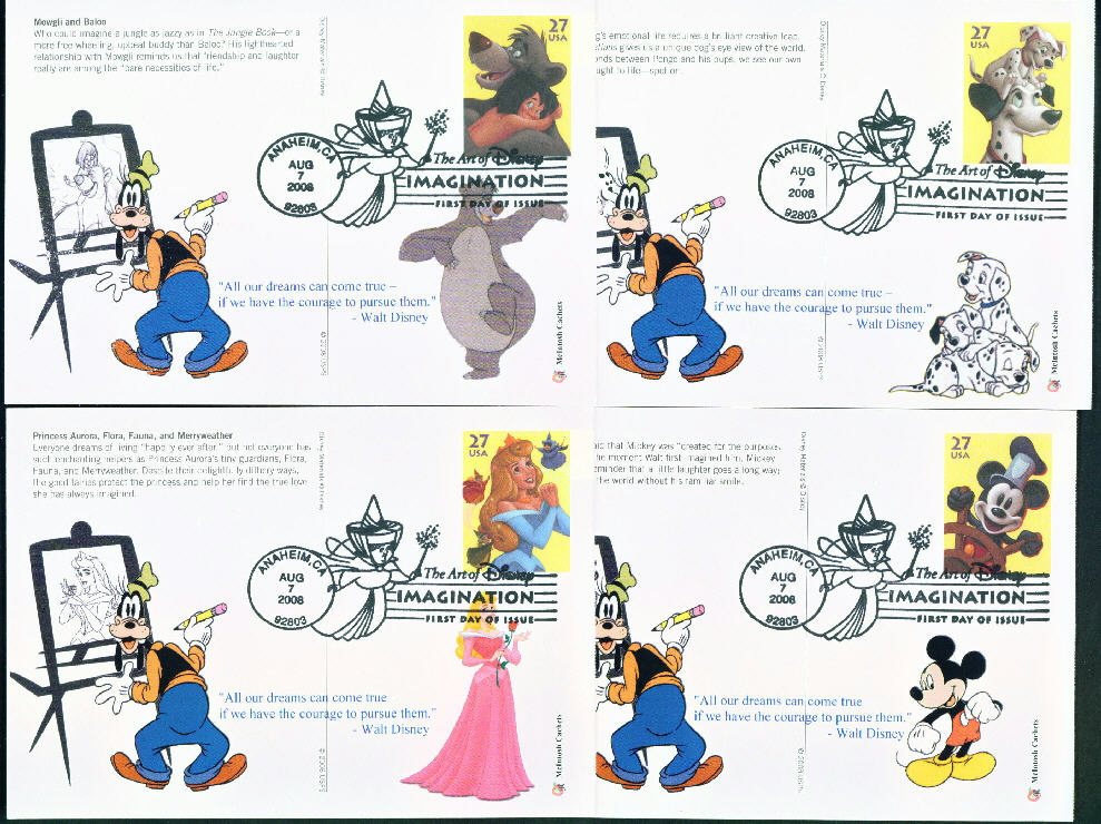 Disney Imagination Set Of 4 Post Cards